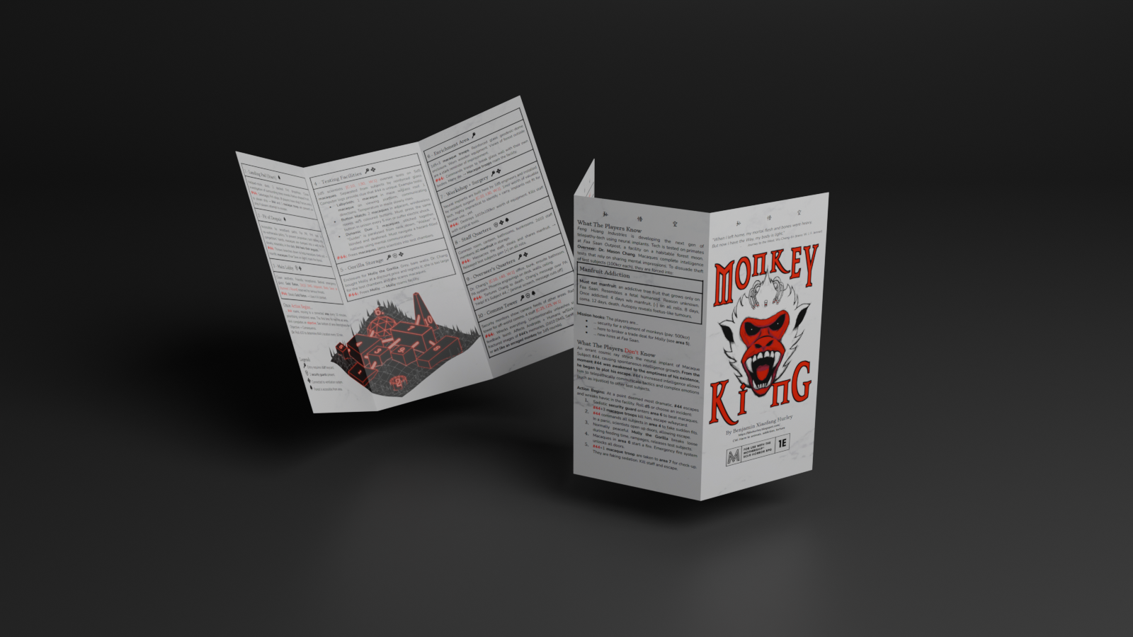 Monkey King is a trifold sci-fi horror scenario designed for use with the Mothership RPG 1e (Tuesday Knight Games). Experience: